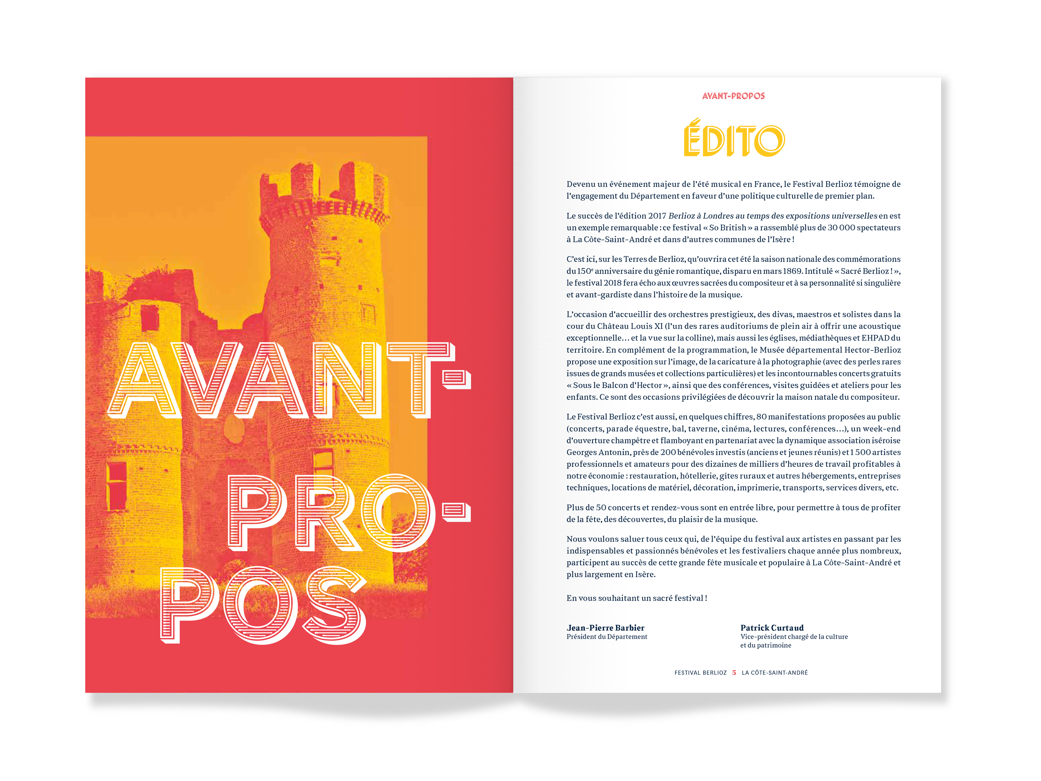 Conception graphique du programme du festival de musique classique Berlioz 2018.