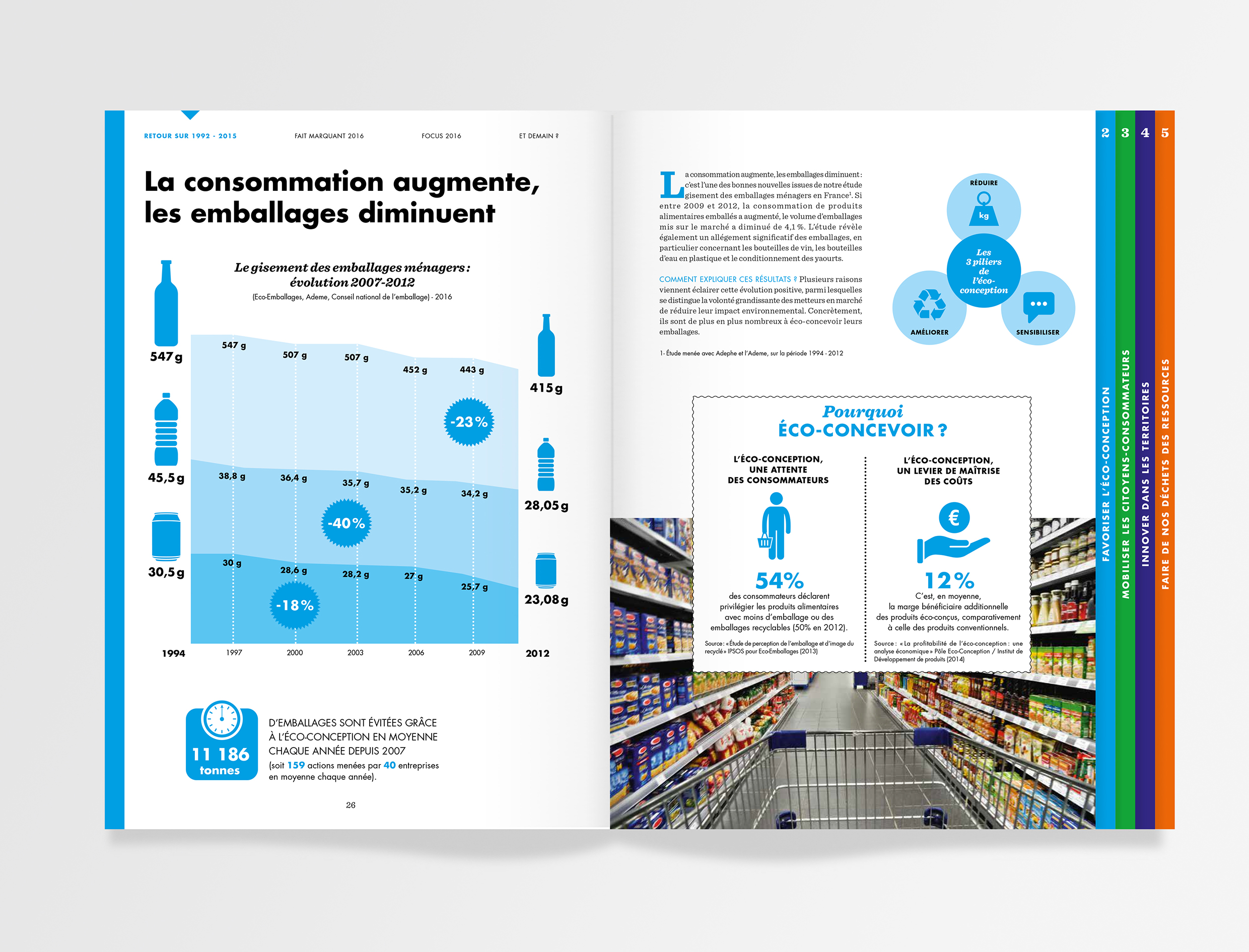 Conception graphique d’un rapport annuel pour Eco-emballage. Projet réalisé pour l’agence Bearideas.