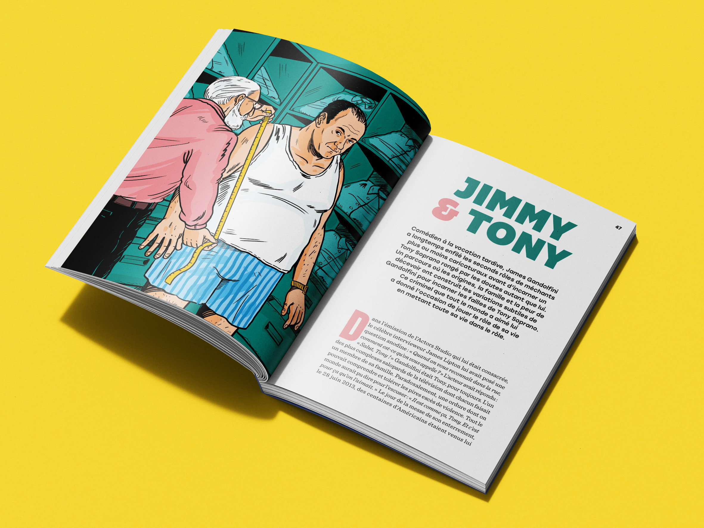 Conception graphique d’un livre sur les Soprano, illustré par Simon Bournel-Bosson